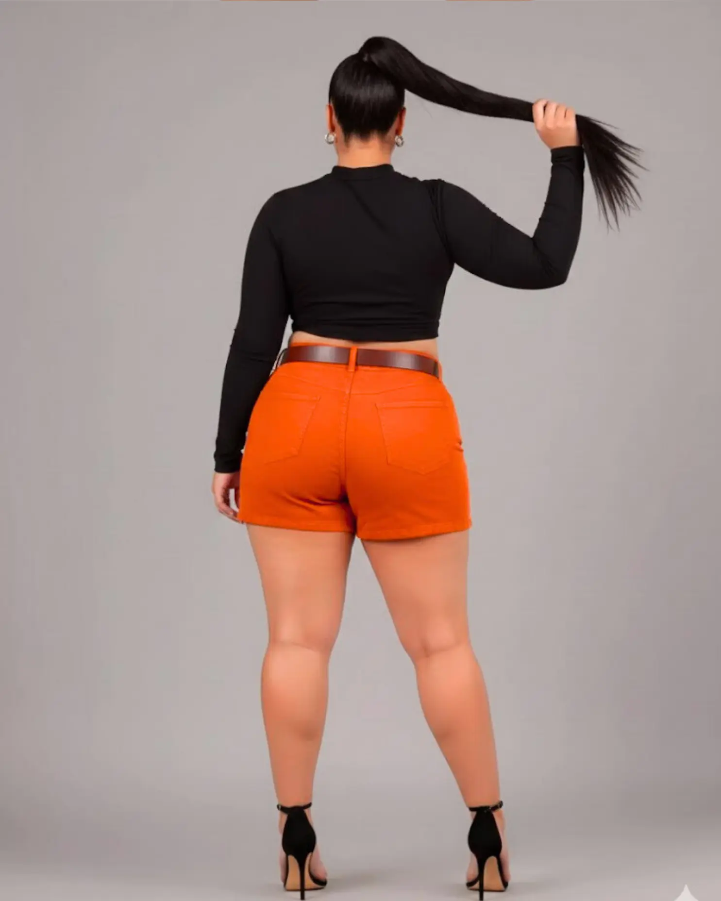 O laranja vibrante é a cor da criatividade e da autoconfiança. Ele cria contrastes luxuosos com tons terrosos (como o marrom do cinto), fica impecável com branco e traz extrema modernidade quando usado com azul marinho ou jeans claro. Mais que um short, é uma peça-chave para você se sentir radiante, autêntica e pronta para brilhar em qualquer ocasião.