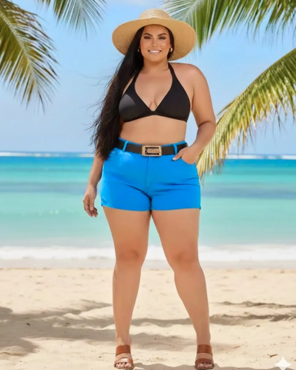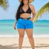O Azul Celeste é a cor da harmonia e da autoconfiança. Ele cria composições impecáveis com biquínis pretos para um look praia luxuoso, combina perfeitamente com branco para um visual “clean” ou com tons terrosos para algo mais rústico. Mais que um short, é o convite para você se sentir radiante, fresca e pronta para dominar qualquer cenário.